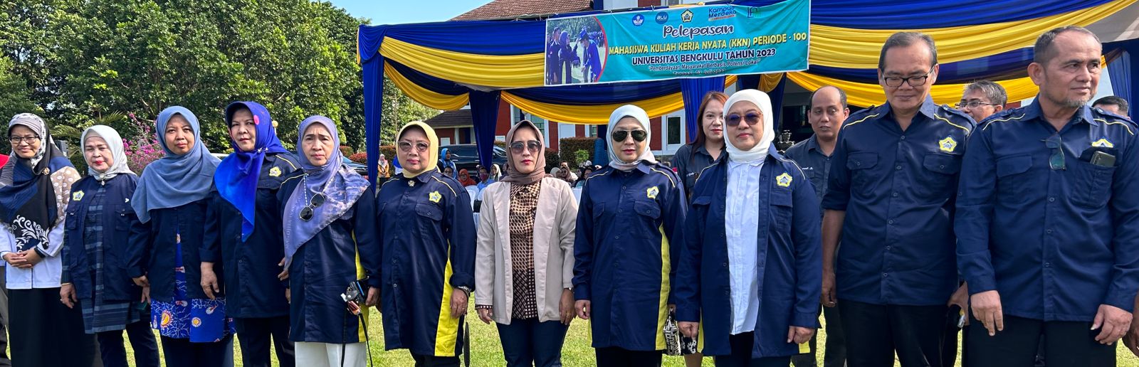 Penyerahan mahasiswa KKN Bilateral dilakukan Dr. Helvi Yanfika, S.P., M.E.P., selaku Ketua Sentra KKN Unila, kepada Dr. Retno Agustina Ekaputri, S.E., M.Sc., selaku Rektor Universitas Bengkulu.
