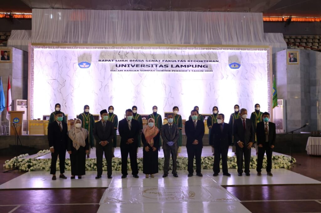 Dekan FK Unila Dr. Dyah Wulan Sumekar R.W., S.K.M., M.Kes., menyampaikan, dengan diambilnya sumpah dokter untuk periode tahun ini maka jumlah lulusan yang telah dihasilkan FK Unila berjumlah 1.462 orang.