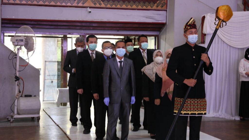 Kegiatan dilakukan secara simbolis oleh 21 mahasiswa perwakilan yang hadir secara offline di GSG Unila, sementara sisanya menyaksikan secara online melalui aplikasi Zoom Meeting.