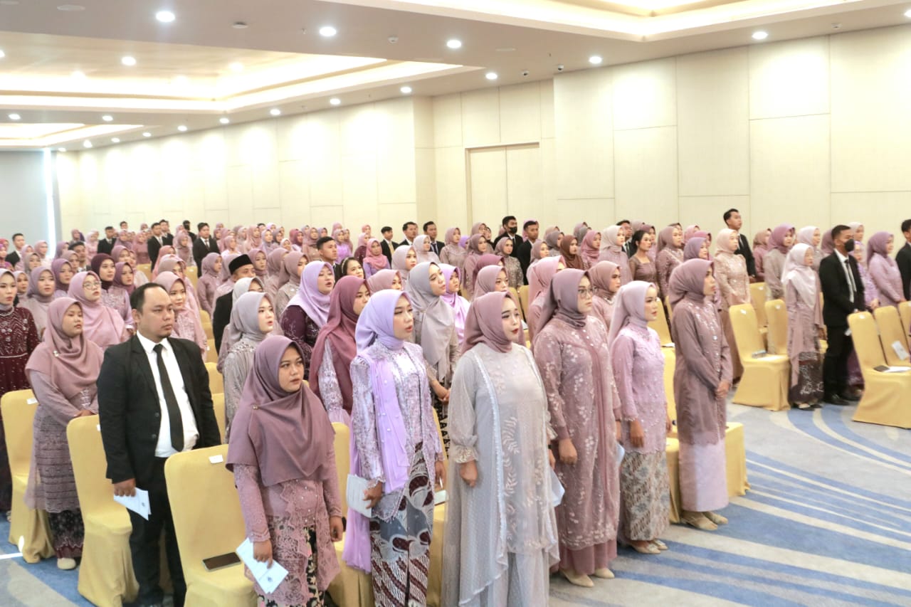 (Unila): Dua ratus lima puluh dua mahasiswa Program Pendidikan Profesional Guru (PPG) Prajabatan angkatan 2022 gelombang satu Fakultas Ilmu Keguruan dan Ilmu Pendidikan (FKIP) Universitas Lampung (Unila) mengambil sumpah profesi guru dan yudisium di Hotel Grand Mercure, Senin, 18 Desember 2023.