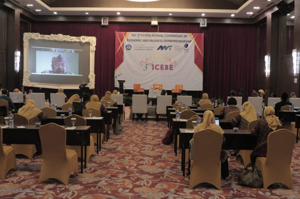 (Unila): Wakil Rektor Bidang Perencanaan Kerja sama dan TIK Universitas Lampung (Unila) Prof. Suharso, Ph.D., membuka International Conference of Economics, Business and Entrepreneurship (ICEBE) ke-3 tahun 2020. Kegiatan bertajuk “Inovasi dan Keberlanjutan di Era Digital”, digelar di Ballroom Hotel Horison dan ditayangkan secara virtual, Kamis (1/10/2020).