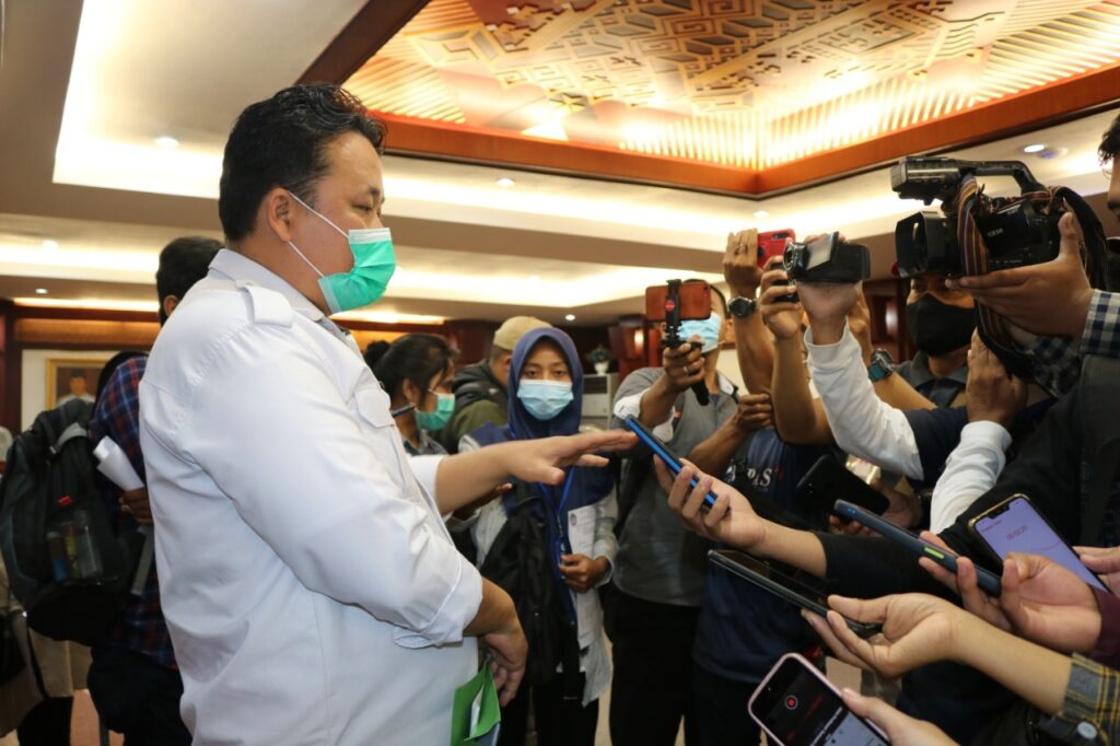 Konferensi pers turut dihadiri Kepala BPHM Budi Sutomo, S.Si., M.Si., dan Jubir Rektor Drs. Kahfie Nazaruddin, M.Hum. [Humas/Angel]