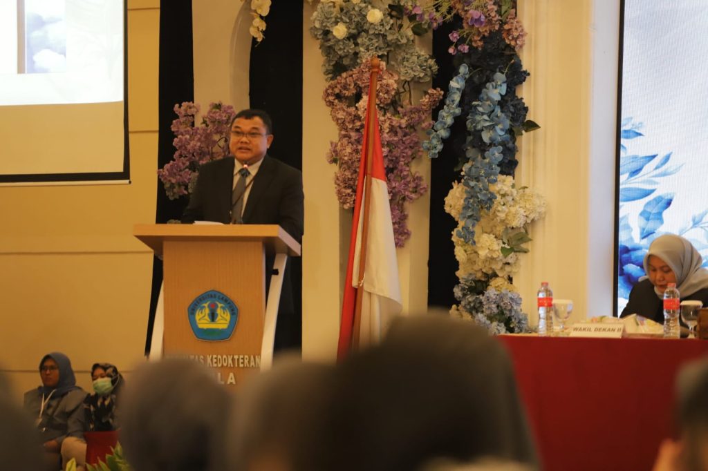 Kegiatan dihadiri Staf Ahli Kemasyarakatan dan Sumber Daya Manusia dr. Lukman Pura, Sp. PD, K-GH., MHSM., Kepala Dinas Kesehatan Provinsi Lampung dr. Edwin Rusli, MKM, Wakil Rektor Bidang Akademik Unila, Prof. Dr. Eng. Suripto Dwi Yuwono, S.Si., M.T., Dekan FK Unila Dr. dr. Evi Kurniawaty, M.Sc., Ketua Senat FK Unila Prof. Dr. dr. Asep Sukohar, S.Ked., M.Kes., serta para jajaran pimpinan FK lainnya.