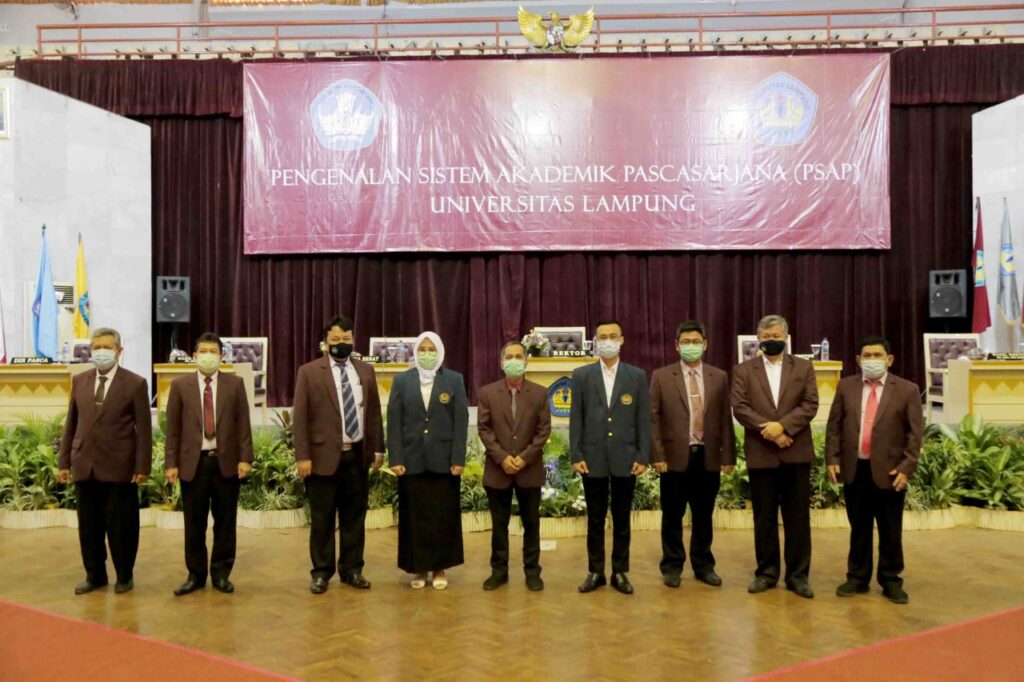 (Unila): 829 mahasiswa Pascasarjana Program Magister dan Doktor Universitas Lampung (Unila) mengikuti program Pengenalan Sistem Akademik Pascasarjana (PSAP), Sabtu (26/9/2020). Kegiatan yang dibuka langsung Rektor Unila Prof. Dr. Karomani, M.Si., ini berlangsung di Gedung Serbaguna (GSG) kampus setempat dan secara virtual melalui aplikasi Zoom.