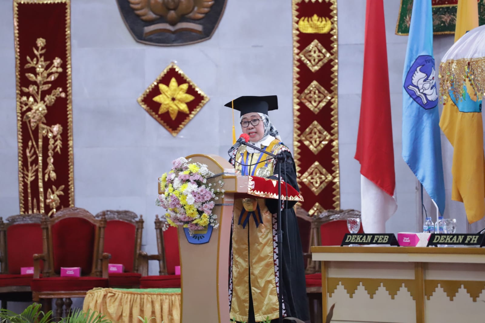 Rektor Unila Prof. Dr. Ir. Lusmeilia Afriani, D.E.A., I.P.M., Asean., Eng., saat memberi sambutan menyampaikan, PKKMB merupakan kesempatan tepat bagi mahasiswa baru untuk mendapatkan informasi komprehensif mengenai sistem pendidikan perguruan tinggi, baik aspek akademik maupun non-akademik.