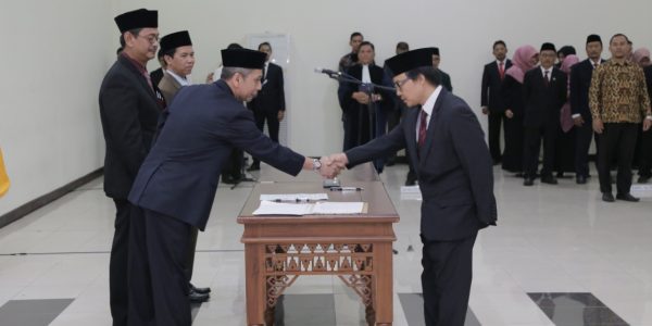 Pelantikan berlangsung di Aula Pelantikan Gedung Rektorat lantai 4, Jumat (10/1/2020) siang.