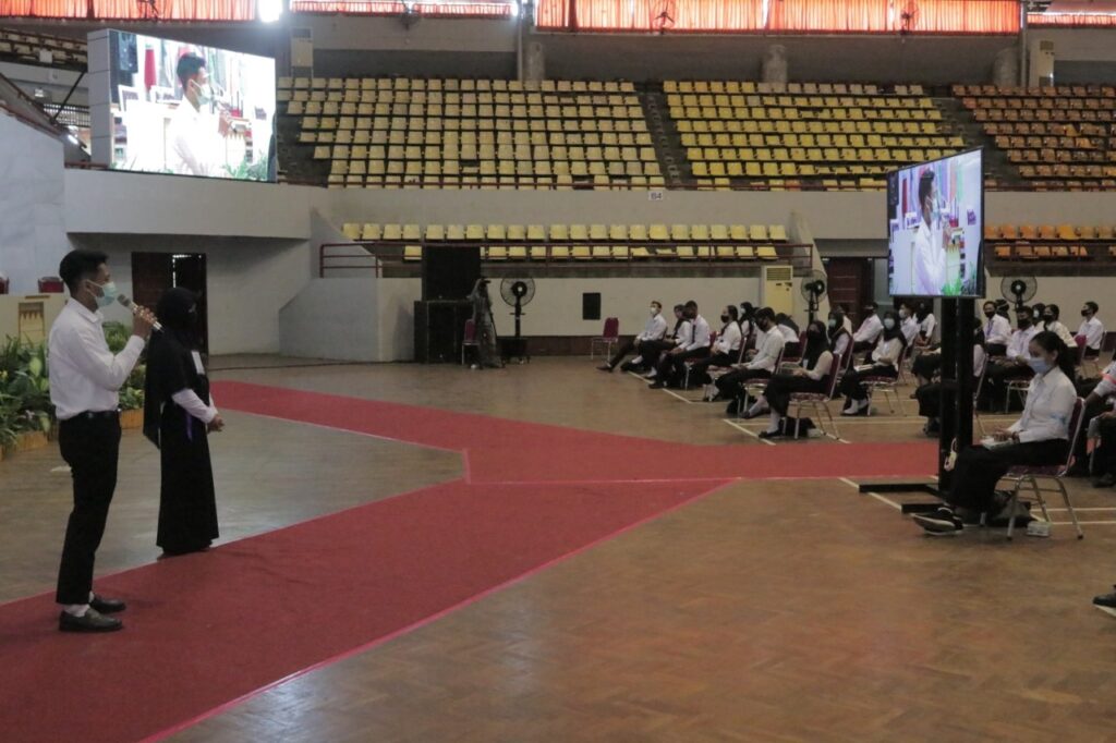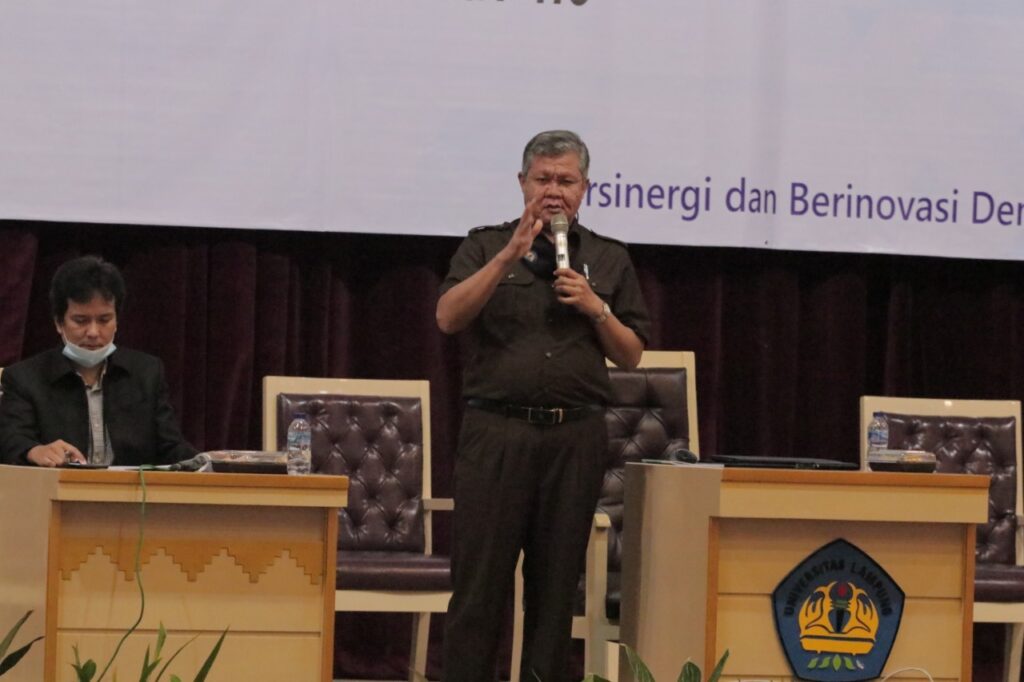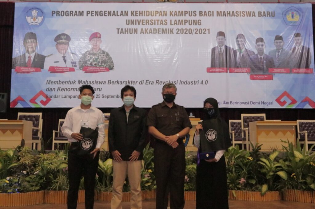 (Unila): Wakil Rektor Bidang Perencanaan, Kerja Sama, dan TIK Universitas Lampung (Unila) Prof. Suharso, Ph.D., menjadi narasumber pada program Pengenalan Kehidupan Kampus Bagi Mahasiswa Baru (PKKMB) Universitas Lampung, di GSG Unila, dan ditayangkan secara online melalui aplikasi Zoom, Selasa (22/09/2020).