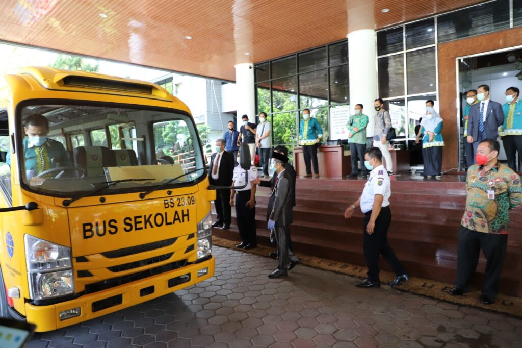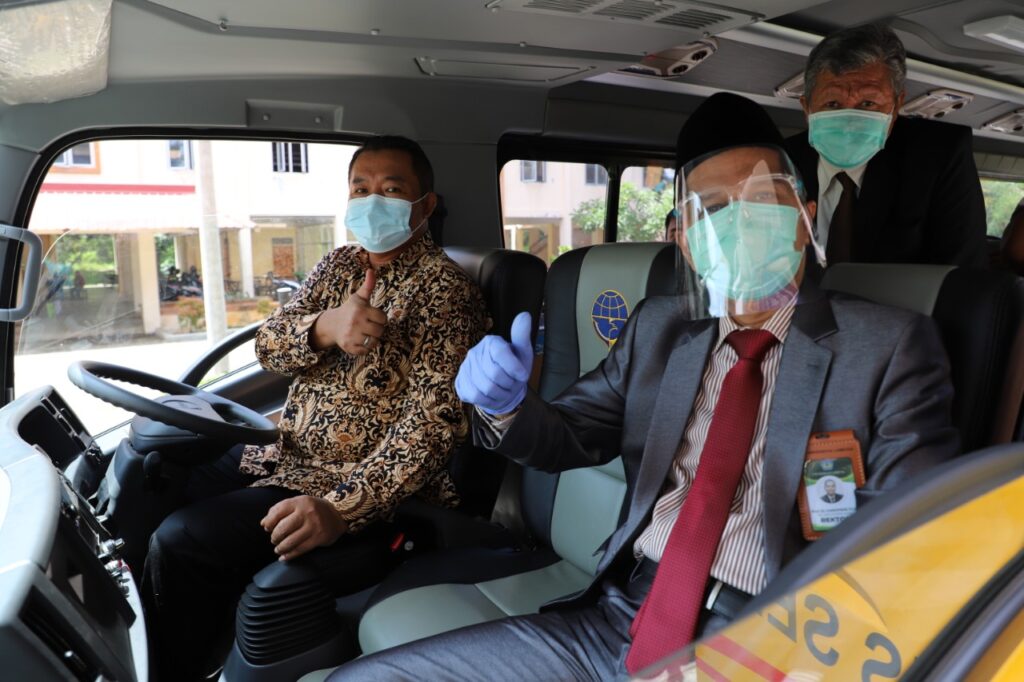 (Unila): Universitas Lampung (Unila) menerima satu unit bus sekolah Bantuan Menteri Perhubungan melalui Program Aspirasi Dewan Perwakilan Rakyat Republik Indonesia, Kamis (17/12/2020).