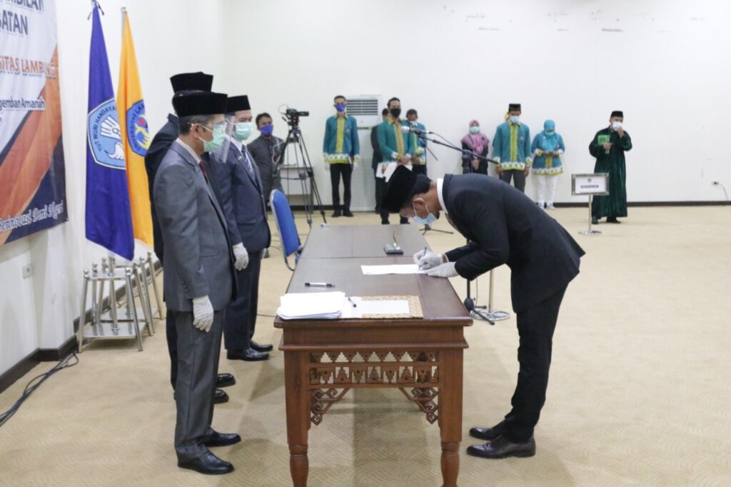 (Unila): Rektor Universitas Lampung (Unila) Prof. Dr. Karomani, M.Si., kembali melakukan pelantikan jabatan fungsional kepada 20 pejabat administrasi di lingkungan kampus setempat, Kamis (17/12/2020) sore.