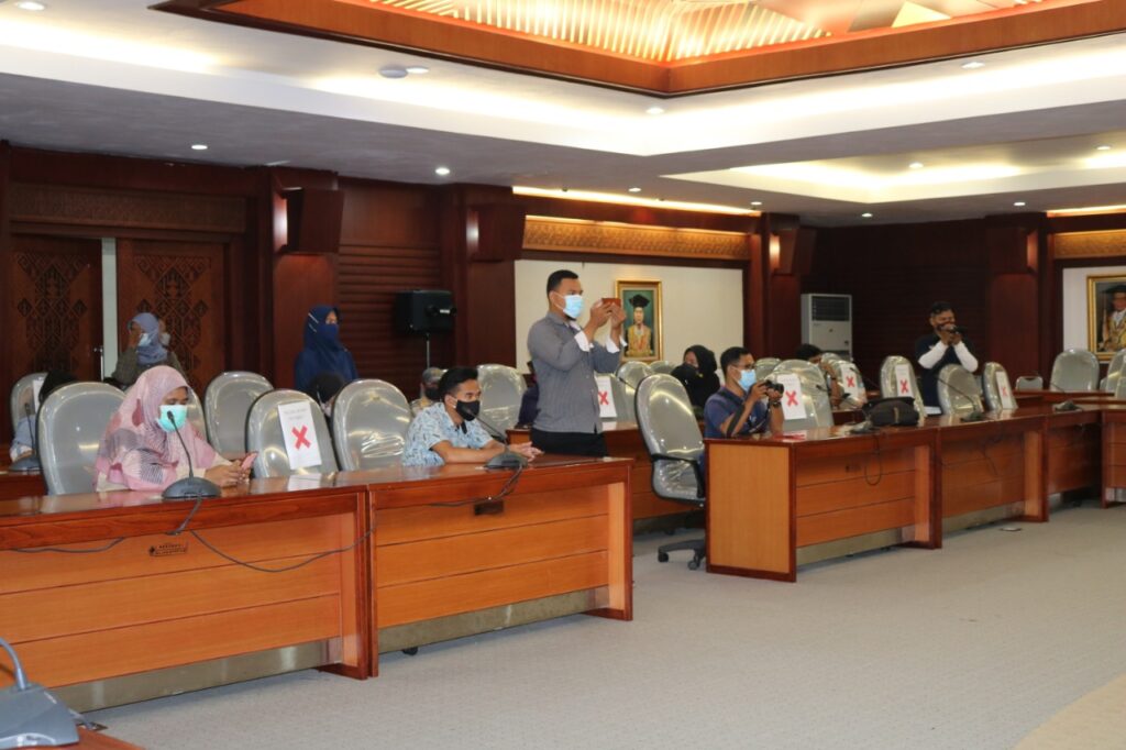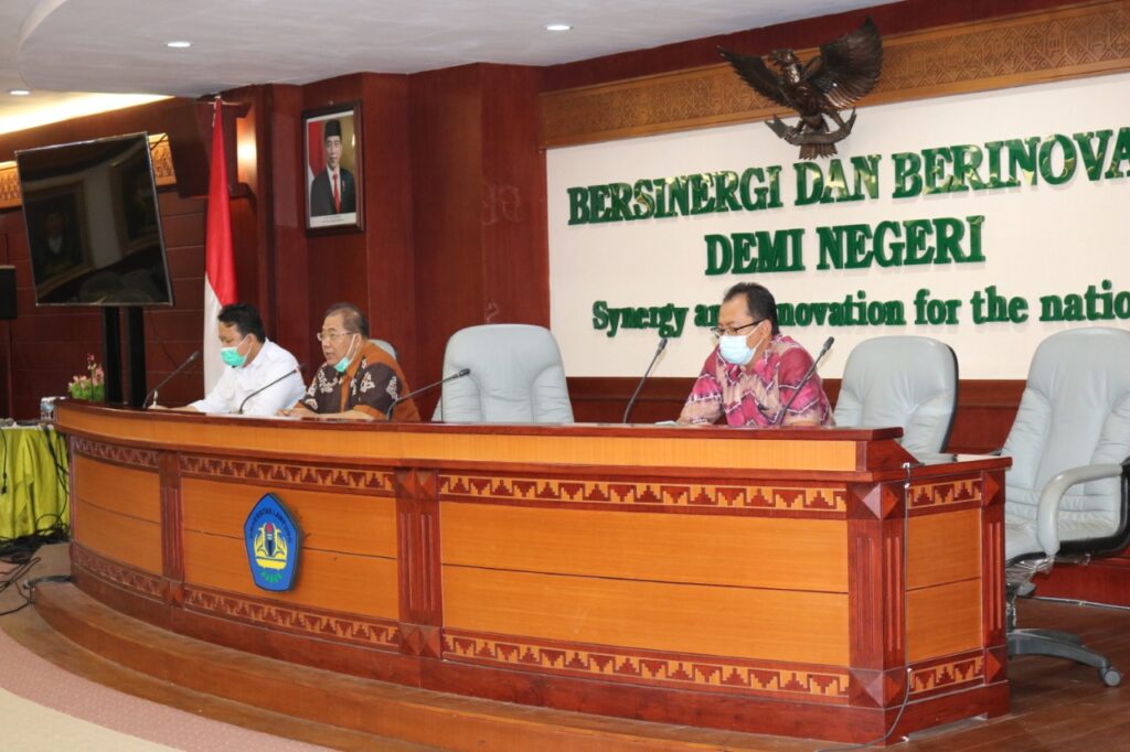Konferensi pers turut dihadiri Kepala BPHM Budi Sutomo, S.Si., M.Si., dan Jubir Rektor Drs. Kahfie Nazaruddin, M.Hum. [Humas/Angel]