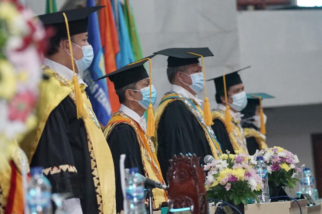Wisuda diselenggarakan secara luring terbatas dengan menghadirkan perwakilan dari masing-masing fakultas, selebihnya diikuti para wisudawan secara daring.