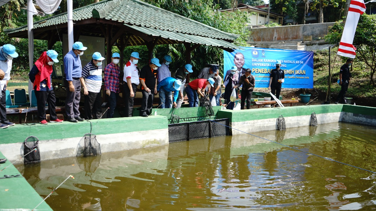 (Unila): Universitas Lampung (Unila) melalui Fakultas Pertanian (FP) dalam rangka Dies Natalis ke-56 mengadakan kegiatan Tebar Benih Ikan dan Lomba Memancing, Senin, 20 September 2021.