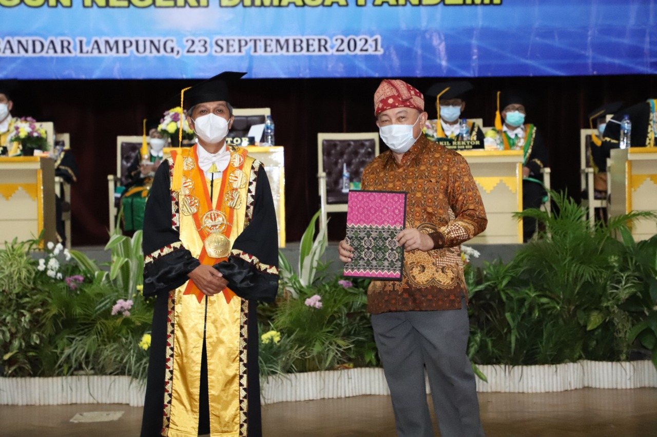 Penghargaan dan penghormatan juga ia sampaikan kepada the founding fathers Unila, para rektor terdahulu, dan sivitas akademika Unila baik lintas generasi maupun lintas periode.