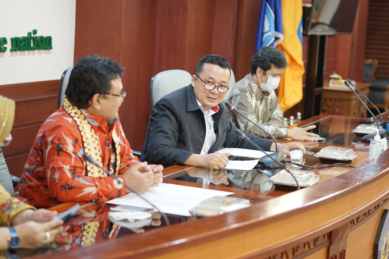 (Unila): Ketua Senat Universitas Lampung (Unila) Dr. (can) Muhammad Basri, S.Pd., M.Pd., beserta jajaran menerima kunjungan kerja Senat Politeknik Negeri Jakarta (PNJ), Senin, 22 November 2021.