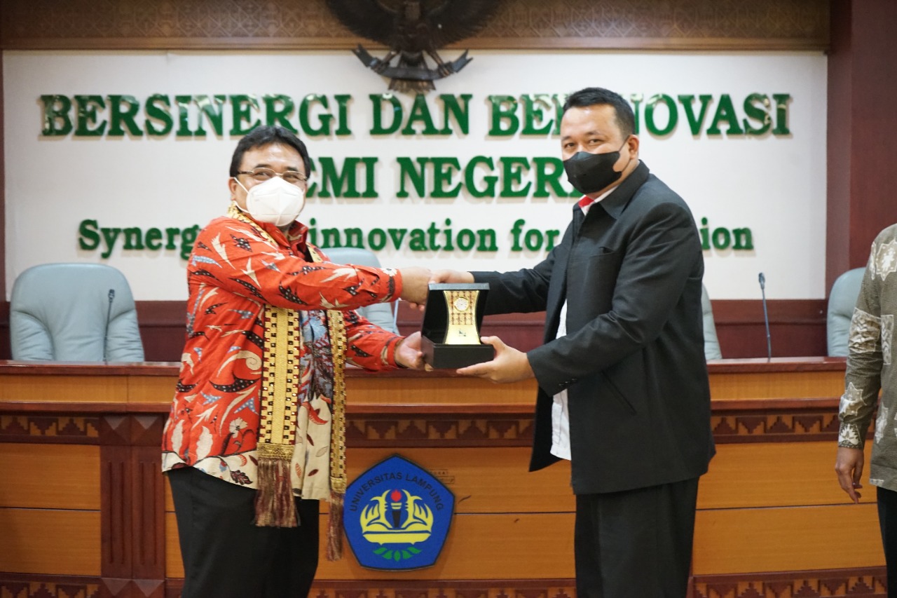 Sesi sharing dimulai dari presentasi Ketua RSPTN Unila Prof. Dr. Satria Bangsawan, S.E., M.Si., dan Andius Dasa Putra, S.T., M.T., Ph.D., selaku Wakil Ketua Tim RSPTN Unila.