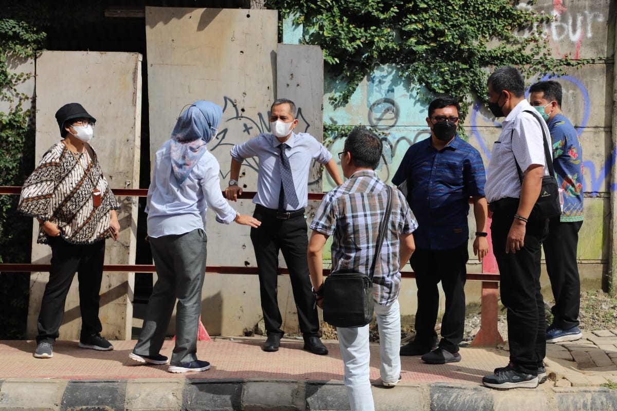 (Unila): Rektor Universitas Lampung (Unila) Prof. Dr. Karomani, M.Si., bersama tim tinjau langsung kondisi drainase di sejumlah titik Kota Bandarlampung, Senin siang, 7 Februari 2022.