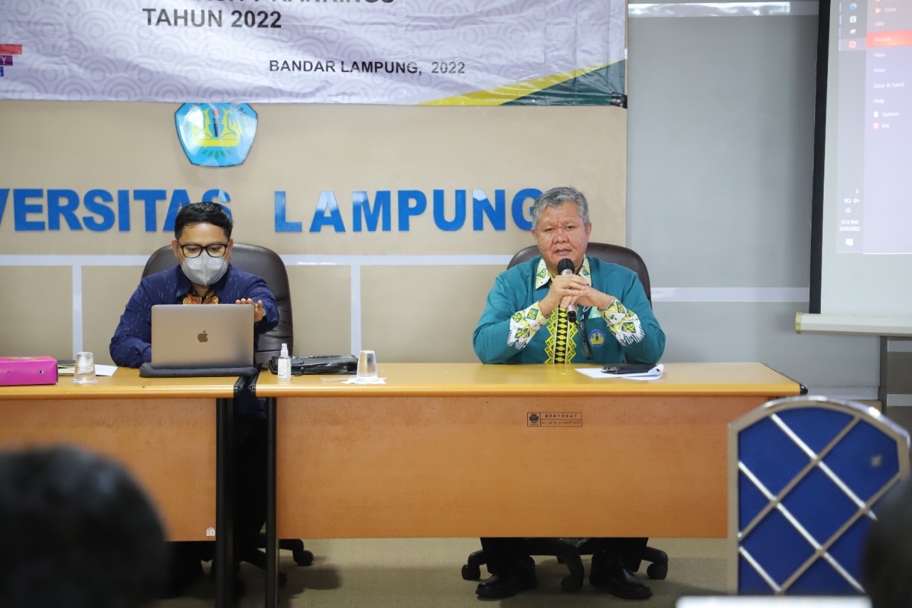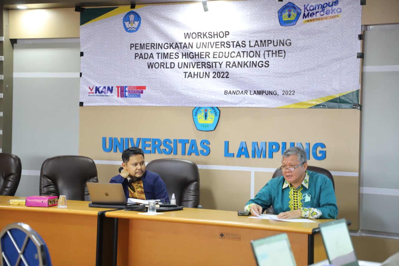 (Unila): Wakil Rektor Bidang Perencanaan, Kerja Sama, dan TIK Universitas Lampung (Unila) Prof. Ir. Suharso, Ph.D., secara resmi mengirimkan hasil pengisian borang Times Higher Education (THE) Tahun 2022.