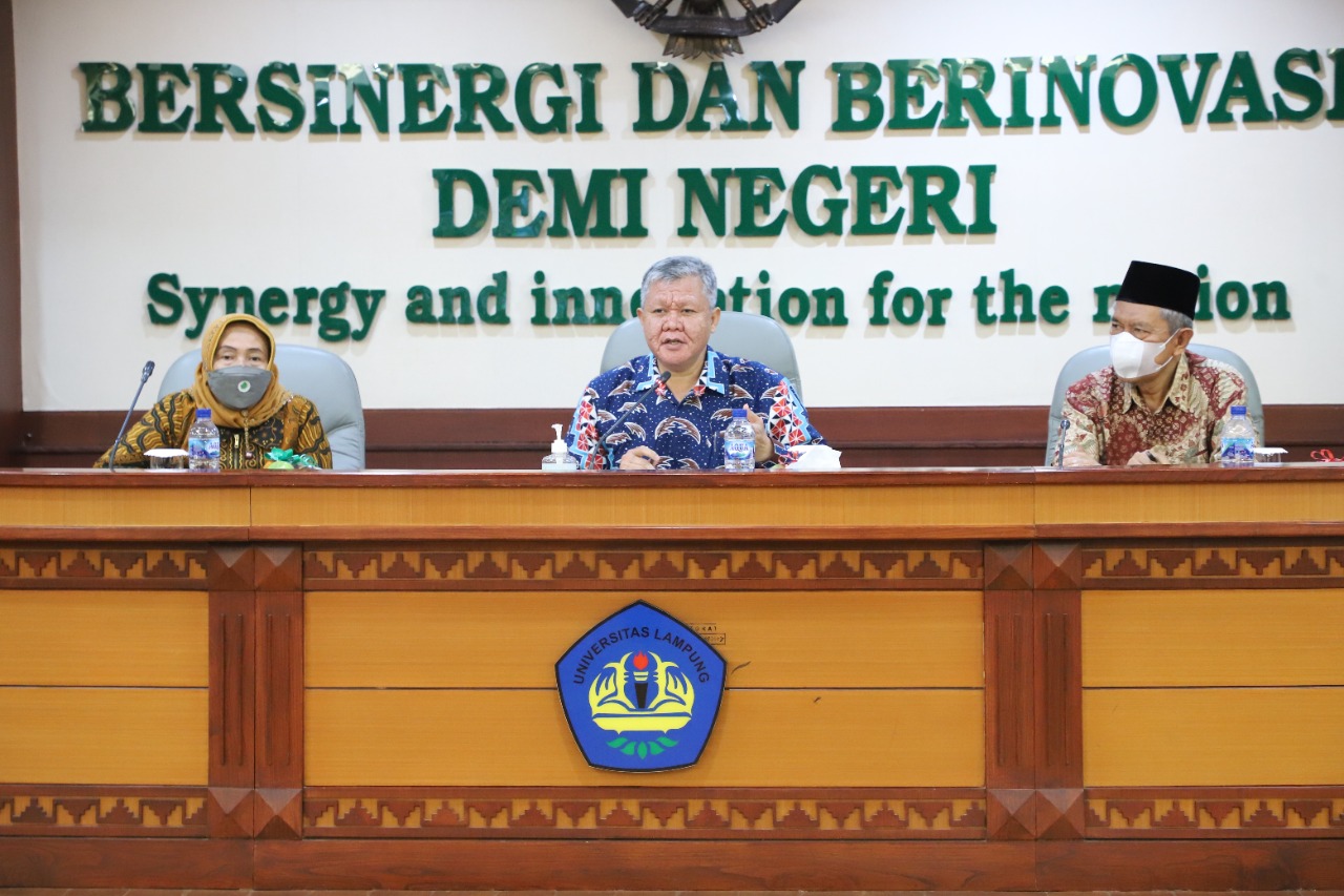 Kegiatan yang diselenggarakan sehari ini dihadiri langsung dekan FEB, dekan FISIP, direktur Pascasarjana, sejumlah wakil dekan di lingkungan Unila, para tim penjamin mutu perguruan tinggi asuhan Unila dari Nusa Tenggara Barat, serta perguruan tinggi negeri dan swasta se-Provinsi Lampung. [Humas/Riky]