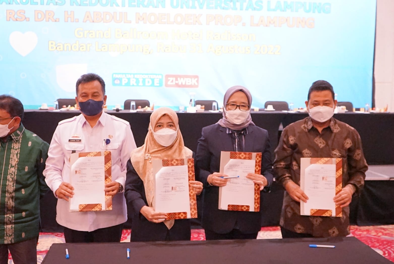 Dalam agenda lokakarya juga digelar penandatanganan antara Fakultas Kedokteran Unila, RSUD Dr. H. Abdul Moeloek Provinsi Lampung, Fakultas Kedokteran Sriwijaya, serta Rumah Sakit Umum Pusat dr. Mohammad Hoesin. Kemudian acara dilanjutkan dengan penyerahan rekomendasi pembina kolegium obgyn dan proses pembinaan oleh fakultas kedokteran pembina, FK Unsri.