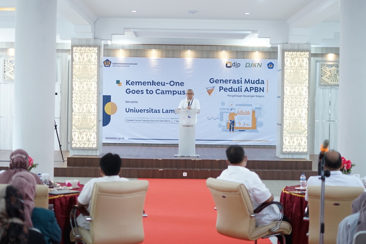 (Unila): Universitas Lampung (Unila) bersama Kantor Wilayah Direktorat Jenderal Pajak (Kanwil DJP) dan Direktorat Jenderal Kekayaan Negara (Kanwil DJKN) menggelar acara Kemenkeu-One Goes to Campus.