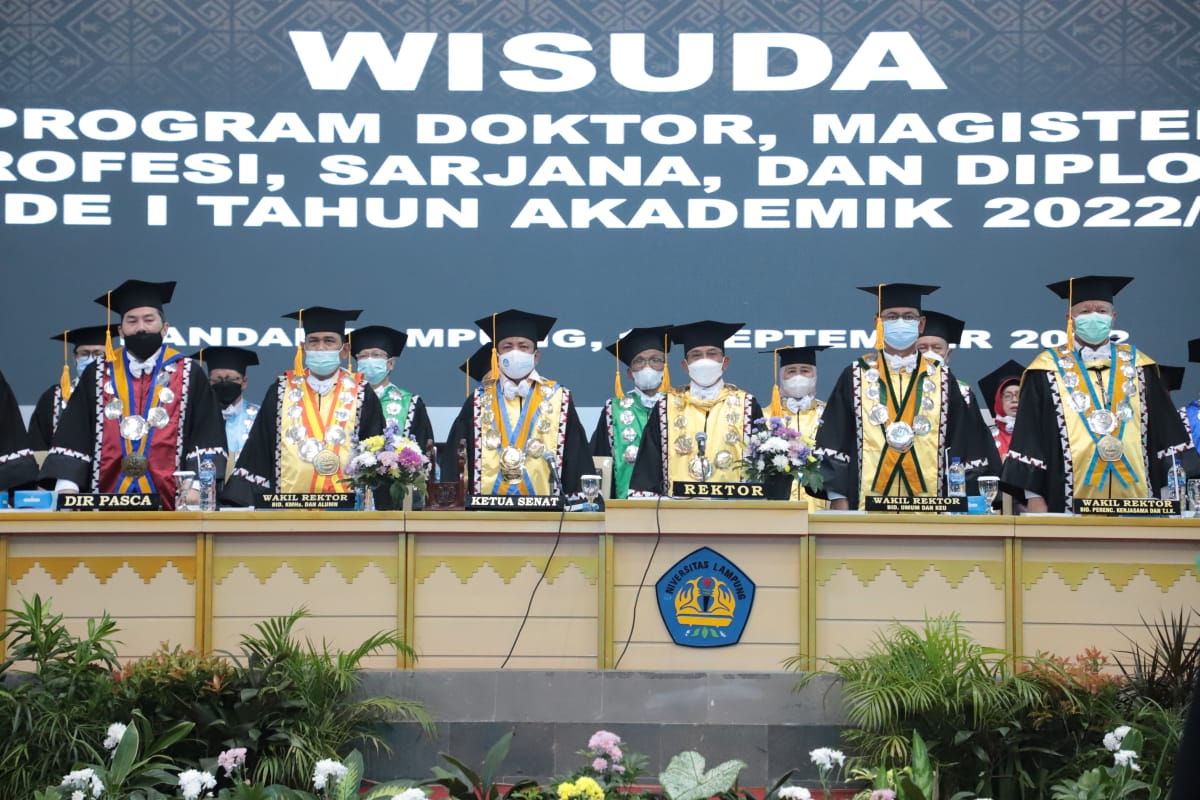 (Unila): Plt. Rektor Universitas Lampung (Unila) Dr. Mohammad Sofwan Effendi, M.Ed., mewisuda 1.098 lulusan program doktor, magister, profesi, sarjana, dan diploma, pada upacara Wisuda Offline Unila Periode I Tahun Akademik 2022/2023 di GSG kampus setempat, Sabtu, 17 September 2022.