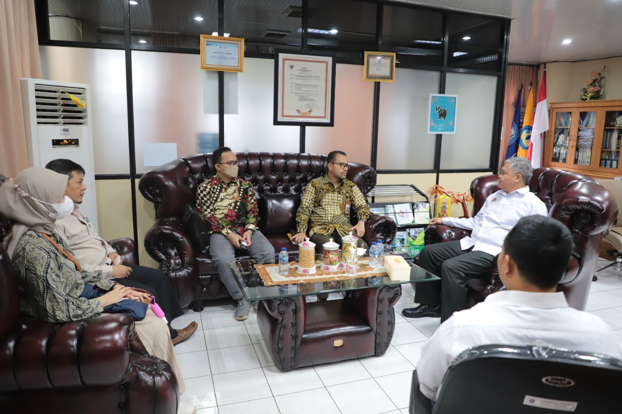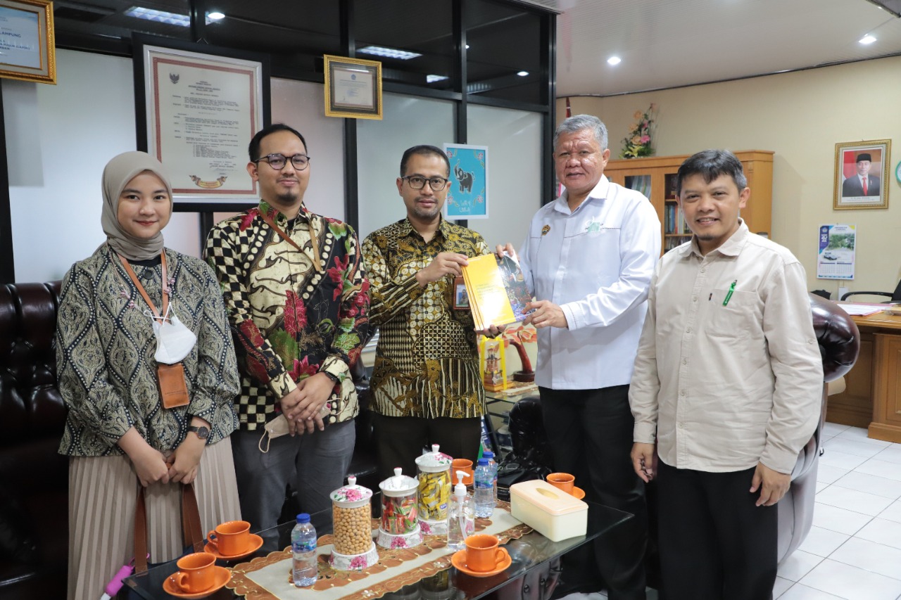 (Unila): Wakil Rektor Bidang PKTIK Universitas Lampung (Unila) Prof. Ir. Suharso, S.Si., Ph.D., menerima kunjungan perwakilan Komite Nasional Ekonomi dan Keuangan Syariah (KNEKS) di ruang kerja, Rabu, 21 September 2022.