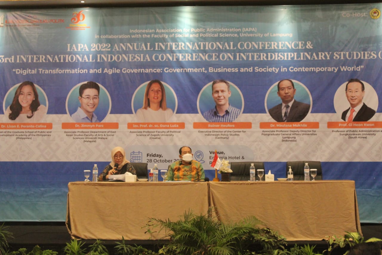 (Unila): Fakultas Ilmu Sosial dan Ilmu Politik (FISIP) Universitas Lampung (Unila) bekerja sama dengan Indonesian Association for Public Administration (IAPA) menyelenggarakan acara konferensi internasional 2022 Annual Conference Indonesian Association for Public Administration (IAPA) and the 3rd International Indonesia Conference on Interdisciplinary Studies (IICIS), di Hotel Emersia, Jumat, 28 Oktober 2022.