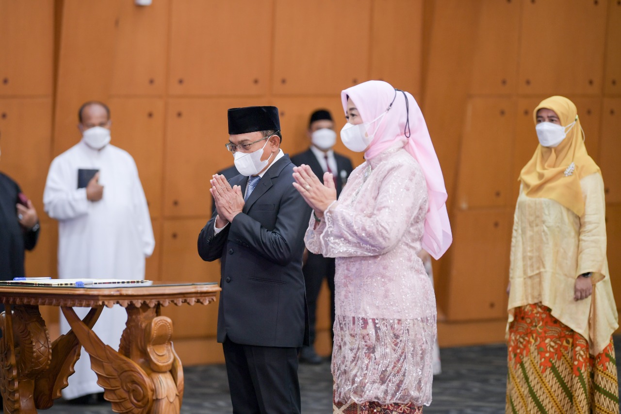 Selain melantik Rektor Unila, Sekretaris Jenderal Kemendikbudristek melantik dan mengambil sumpah jabatan pejabat administrator, pejabat pengawas, dan pejabat fungsional di lingkungan Kemendikbudristek. [Humas/Angel]