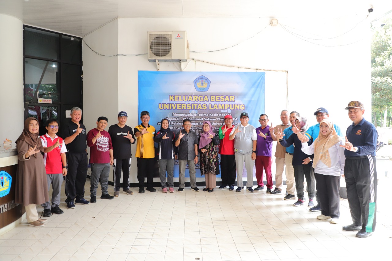 Pisah sambut Rektor Unila diawali senam pagi dan sarapan bersama. Rektor, para wakil rektor, ya jajaran pimpinan rektorat, fakultas, unit dan lembaga, serta dosen dan tendik tampak antusias mengikuti rangkaian pembukaan.