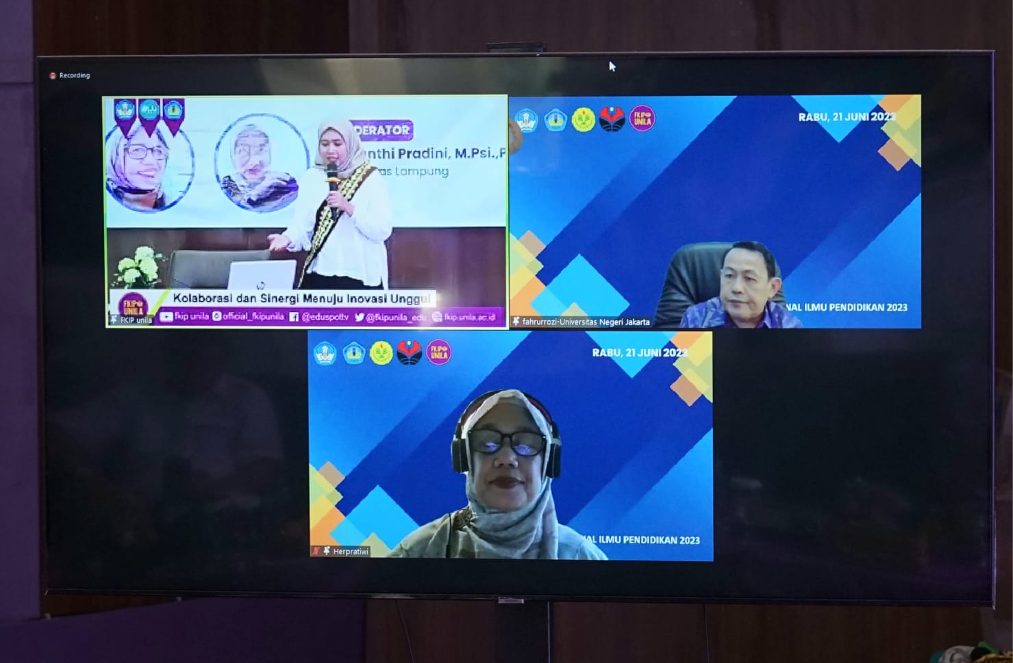 (Unila): FKIP Universitas Lampung (Unila) mengadakan Seminar Nasional bertajuk “Penguatan Peran Calon Pendidik yang Inovatif dan Berkarakter” pada Rabu, 21 Juni 2023. Kegiatan ini berlangsung di Aula Gedung K FKIP Unila dan diikuti 351 peserta dari berbagai daerah di Indonesia.