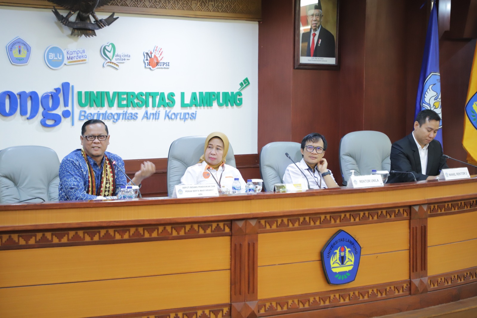 (Unila): Universitas Lampung (Unila) menghadirkan Deputi Bidang Pendidikan dan Peran Serta Masyarakat Komisi Pemberantasan Korupsi (KPK) Wawan Wardiana, sebagai narasumber kegiatan Diklat Kepemimpinan “Membangun Integritas dalam Dunia Pendidikan tanpa Korupsi”, pada Rabu, 2 Agustus 2023.
