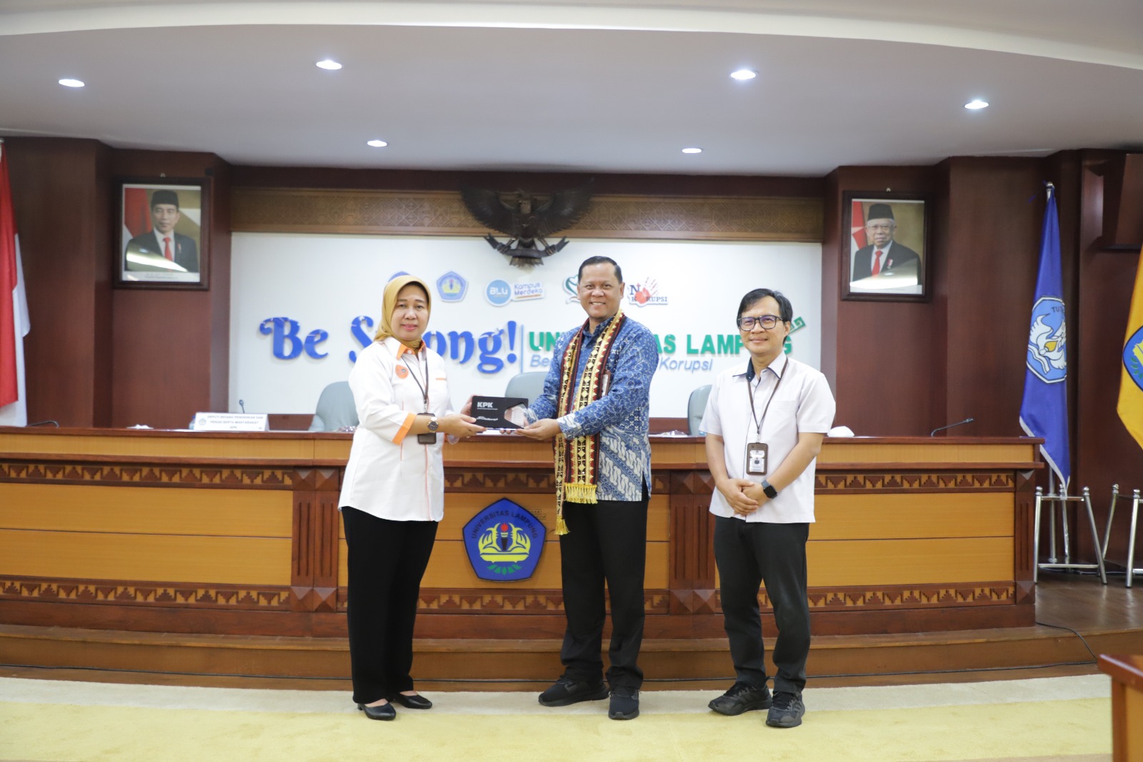 Mewakili KPK, Wawan memaparkan materi tentang etika dan integritas kepemimpinan dengan judul “Integritas Kepemimpinan dalam Pengelolaan Perguruan Tinggi” kepada para tendik Unila.