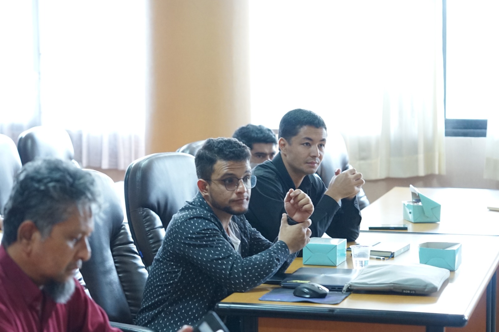Kegiatan ini dihadiri Ala Ali Qasem Alraimi mahasiswa magister teknik sipil dari Yaman, Karim Azizi mahasiswa Magister Teknik Pendidikan dari Afghanistan, Abdul Basit Dihqan mahasiswa Magister Ilmu Hukum dari Afghanistan, Kepala UPT PKLI, Sub. Kord. TU UPT PKLI, Kadiv. Bidang Layanan Internasional, Kadiv. Bidang Kerja Sama, dan para Kaprodi. [Daffa]