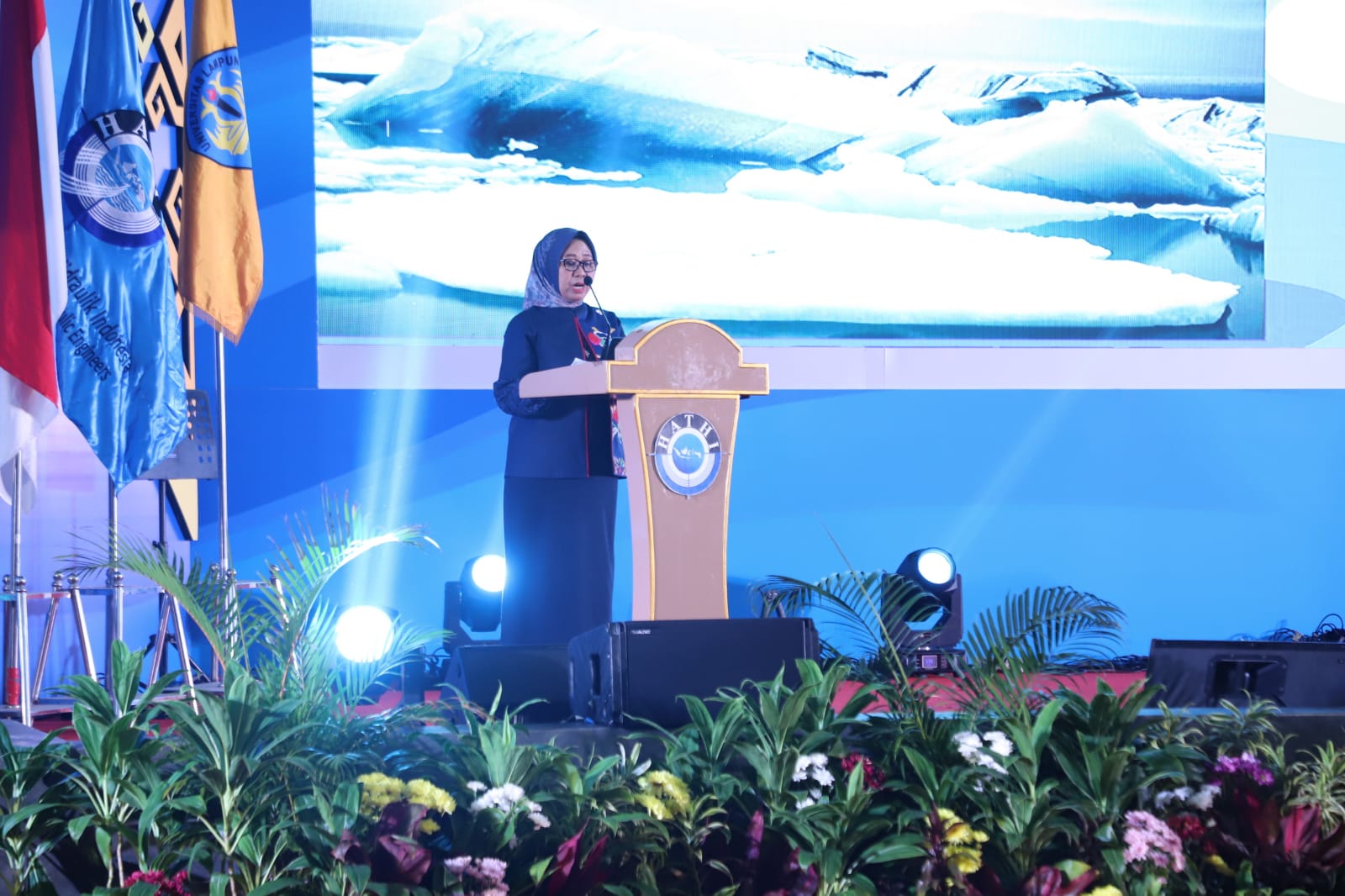 Dalam keynote speech, Rektor Universitas Lampung, Prof. Dr. Ir. Lusmeilia Afriani, D.E.A., IPM., ASEAN. Eng., mengingatkan tentang seriusnya dampak perubahan iklim di Indonesia.