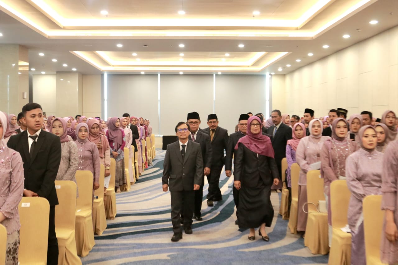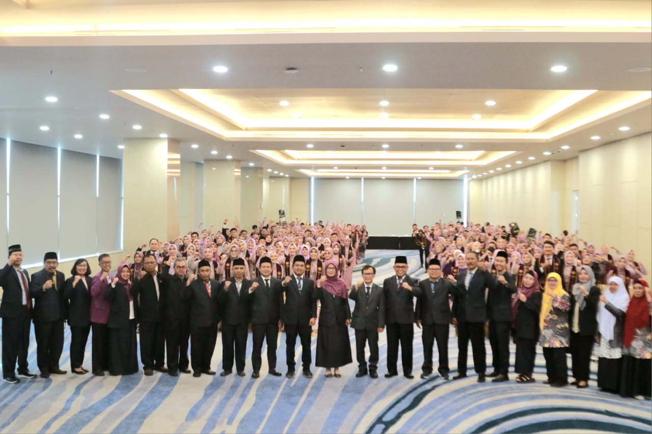(Unila): Dua ratus lima puluh dua mahasiswa Program Pendidikan Profesional Guru (PPG) Prajabatan angkatan 2022 gelombang satu Fakultas Ilmu Keguruan dan Ilmu Pendidikan (FKIP) Universitas Lampung (Unila) mengambil sumpah profesi guru dan yudisium di Hotel Grand Mercure, Senin, 18 Desember 2023.