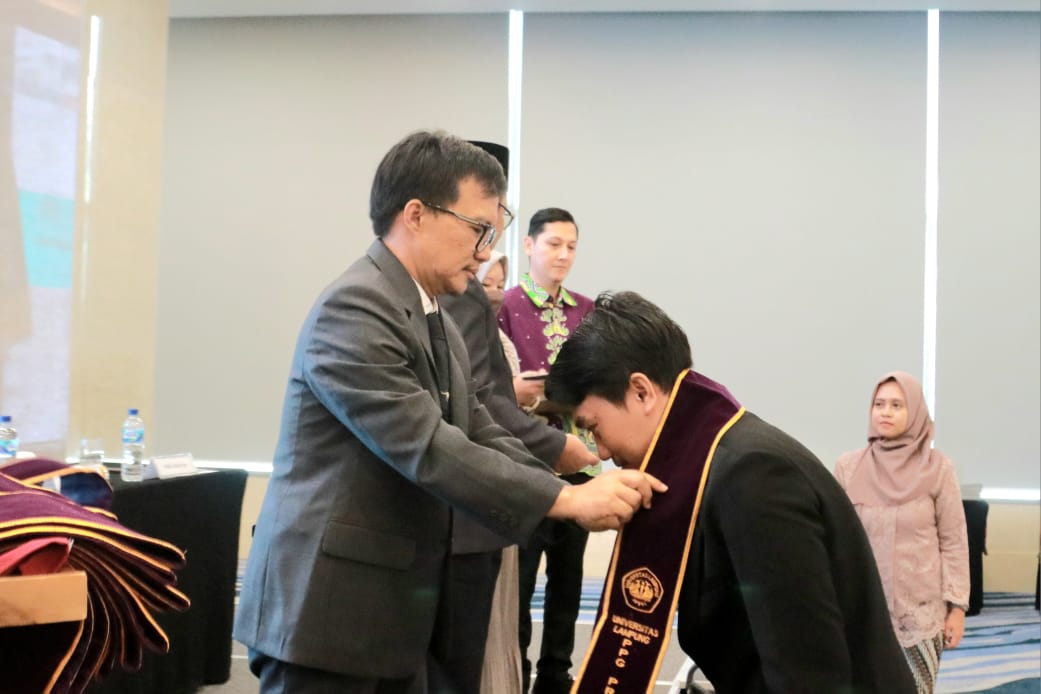 Wakil Rektor Bidang Umum dan Keuangan Unila Prof. Rudy, S.H., LL.M., LL.D., mengucapkan selamat kepada seluruh mahasiswa PPG yang berhasil lulus dan diyudisium.