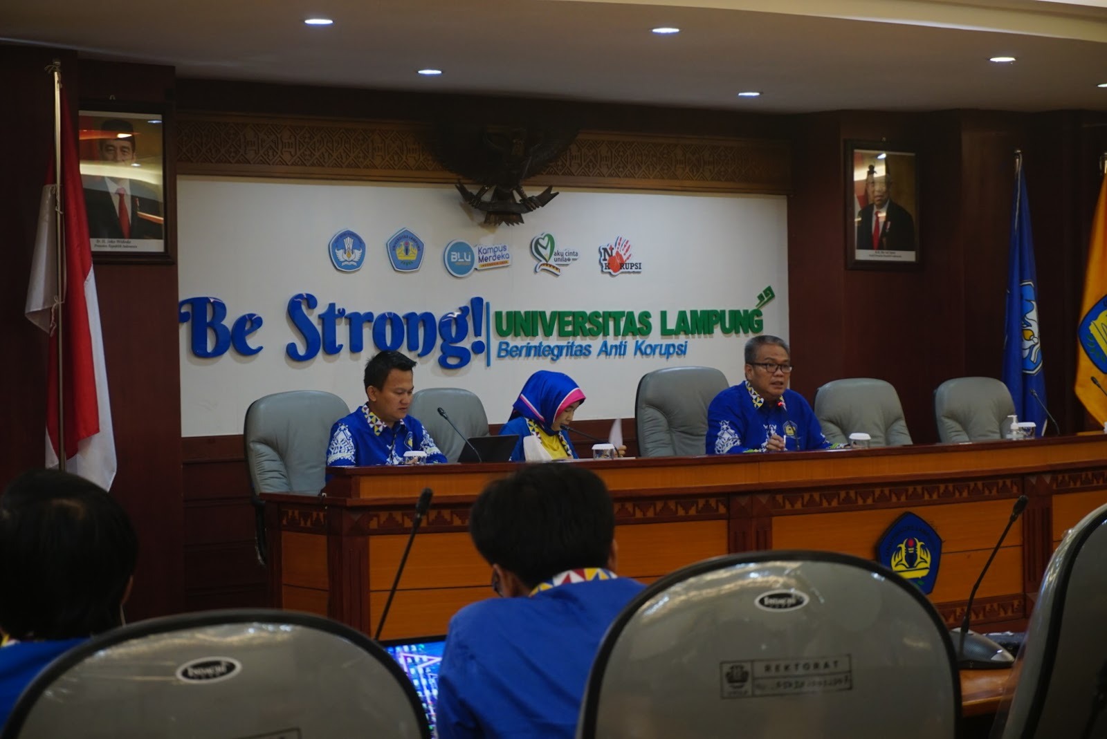 (Unila): Program Revitalisasi Perguruan Tinggi Negeri (PR-PTN) Universitas Lampung (Unila) mengadakan rapat evaluasi pelaksanaan anggaran di lantai dua gedung rektorat pada Kamis, 20 Juni 2024.
