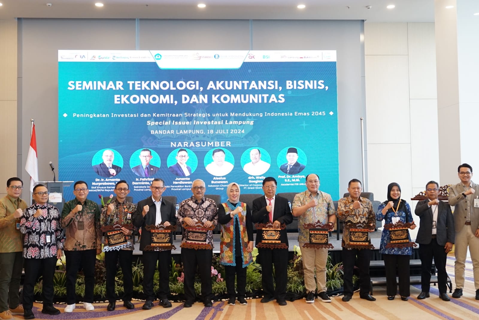 (Unila): Fakultas Ekonomi dan Bisnis (FEB) Universitas Lampung (Unila) menyelenggarakan Seminar Nasional Teknologi, Akuntansi, Bisnis, dan Ekonomi dan Komunitas (STABEK) ke-8, di Hotel Grand Mercure Lampung, Kamis, 18 Juli 2024.