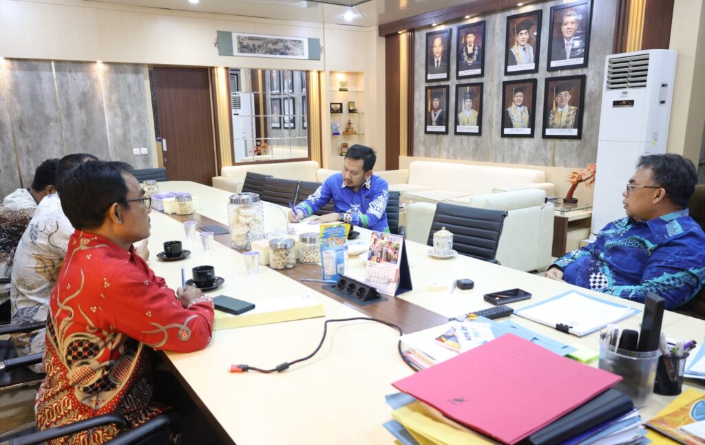 Wakil Rektor Bidang PKSI Unila Prof. Dr. Ayi Ahadiat, S.E., M.B.A., didampingi para akademisi, antara lain Fajrin Satria Dwi Kesumah, S.E., M.FBE., dan Dr. Dedy Yuliawan, S.E., M.Si., menerima delegasi Dinas Perhubungan Kabupaten Way Kanan yang dipimpin Romli Effendi, S.H., M.M., bersama Linggarish Subandrio, S.T., dan Misbah Zainul Warid, S.T.