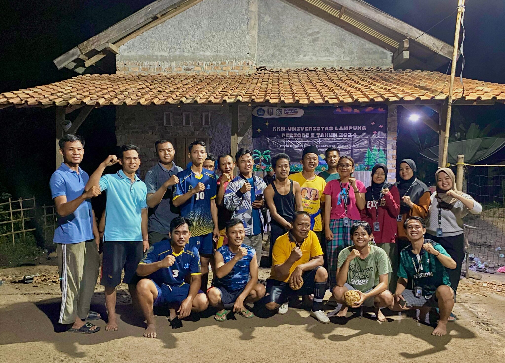 (Unila): Mahasiswa KKN Universitas Lampung (Unila) periode satu Kampung Pisang Indah, Kecamatan Bumi Agung, Kabupaten Way Kanan, bersama warga menyelenggarakan lomba sepak takraw antarwarga di Dusun 2 Sripurnomo, pada Senin, 5 Februari 2024.