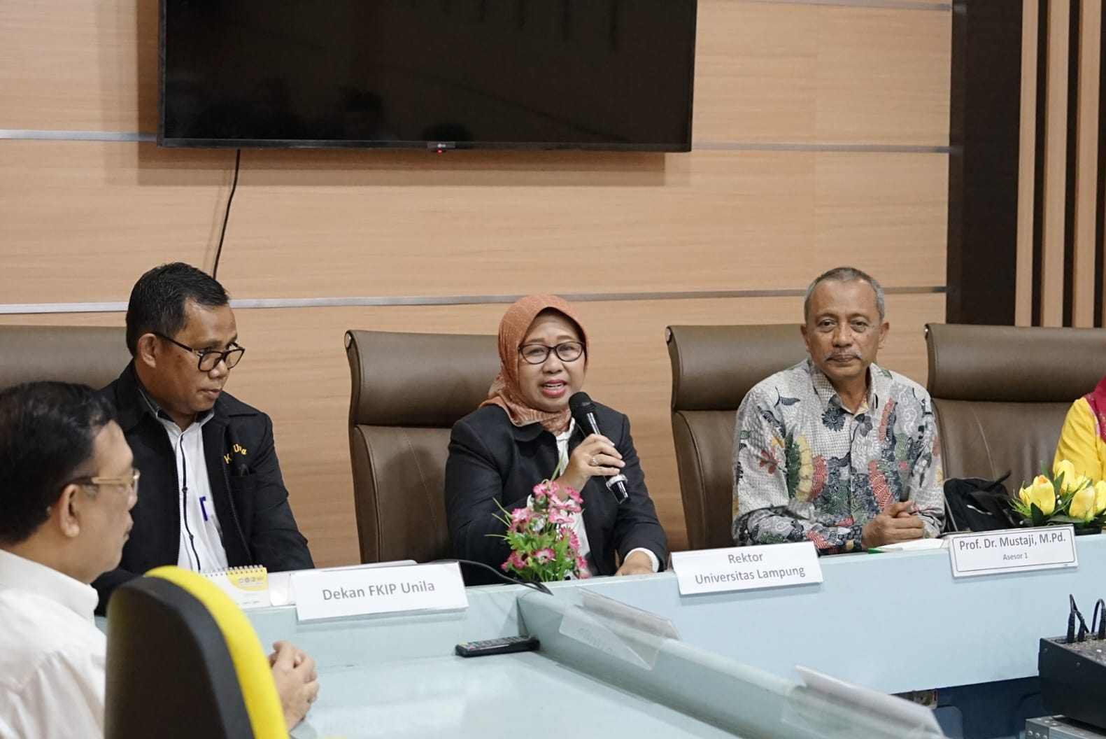 (Unila): Rektor Universitas Lampung (Unila) Prof. Dr. Ir. Lusmeilia Afriani, D.E.A., I.P.M., membuka Asesmen Lapangan Akreditasi Prodi Doktor Pendidikan FKIP Unila. Kegiatan diadakan selama dua hari secara luring, Rabu hingga Kamis, 1 – 2 Februari 2023, di ruang Dekanat Gedung A lantai dua FKIP.
