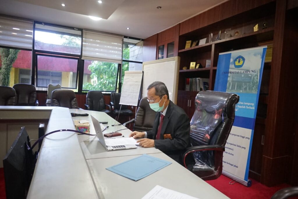 (Unila): Rektor Universitas Lampung (Unila) Prof. Dr. Karomani, M.Si., membuka asesmen lapangan untuk akreditasi Program Studi S3 MIPA, Fakultas Matematika dan Ilmu Pengetahuan Alam (FMIPA) Unila, via zoom, Senin, 7 Juni 2021.