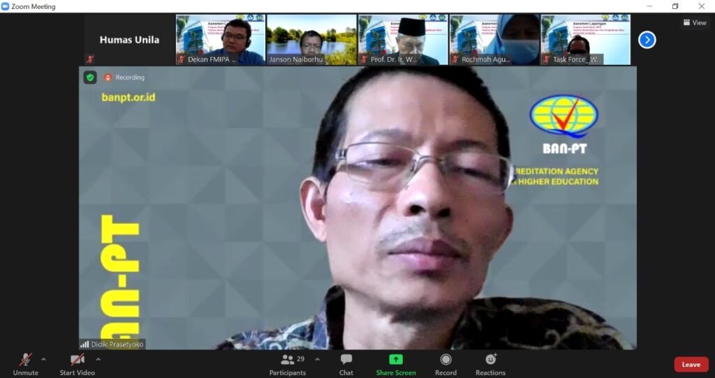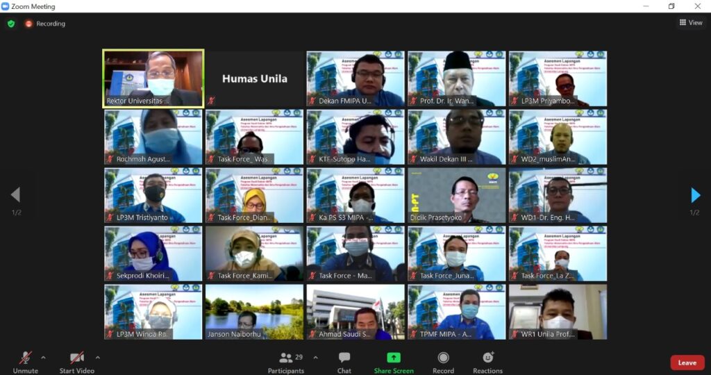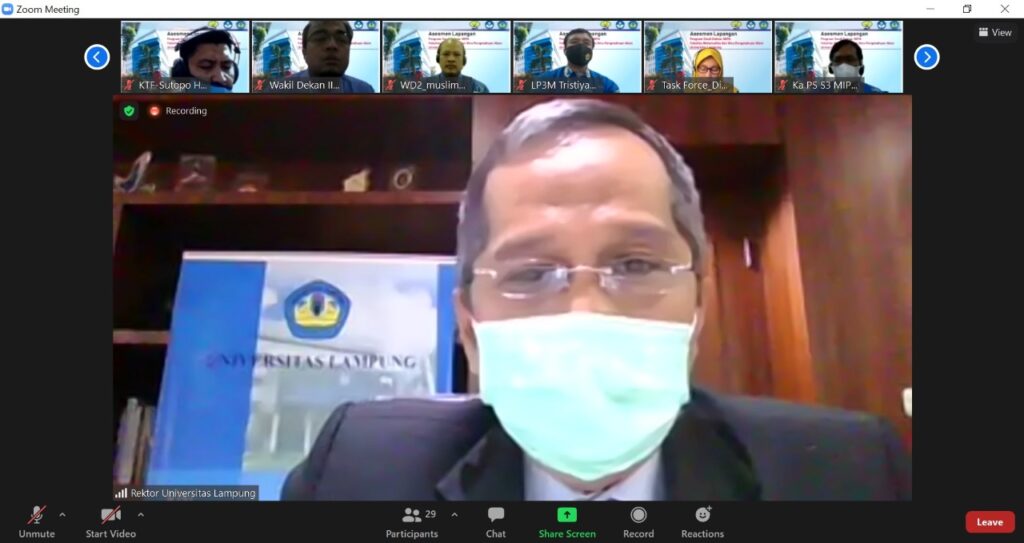 Asesmen dilakukan secara daring ini dihadiri Wakil Rektor Bidang Akademik Prof. Heryandi, dekan, beserta jajaran wakil dekan, dan sivitas akademika FMIPA Unila.