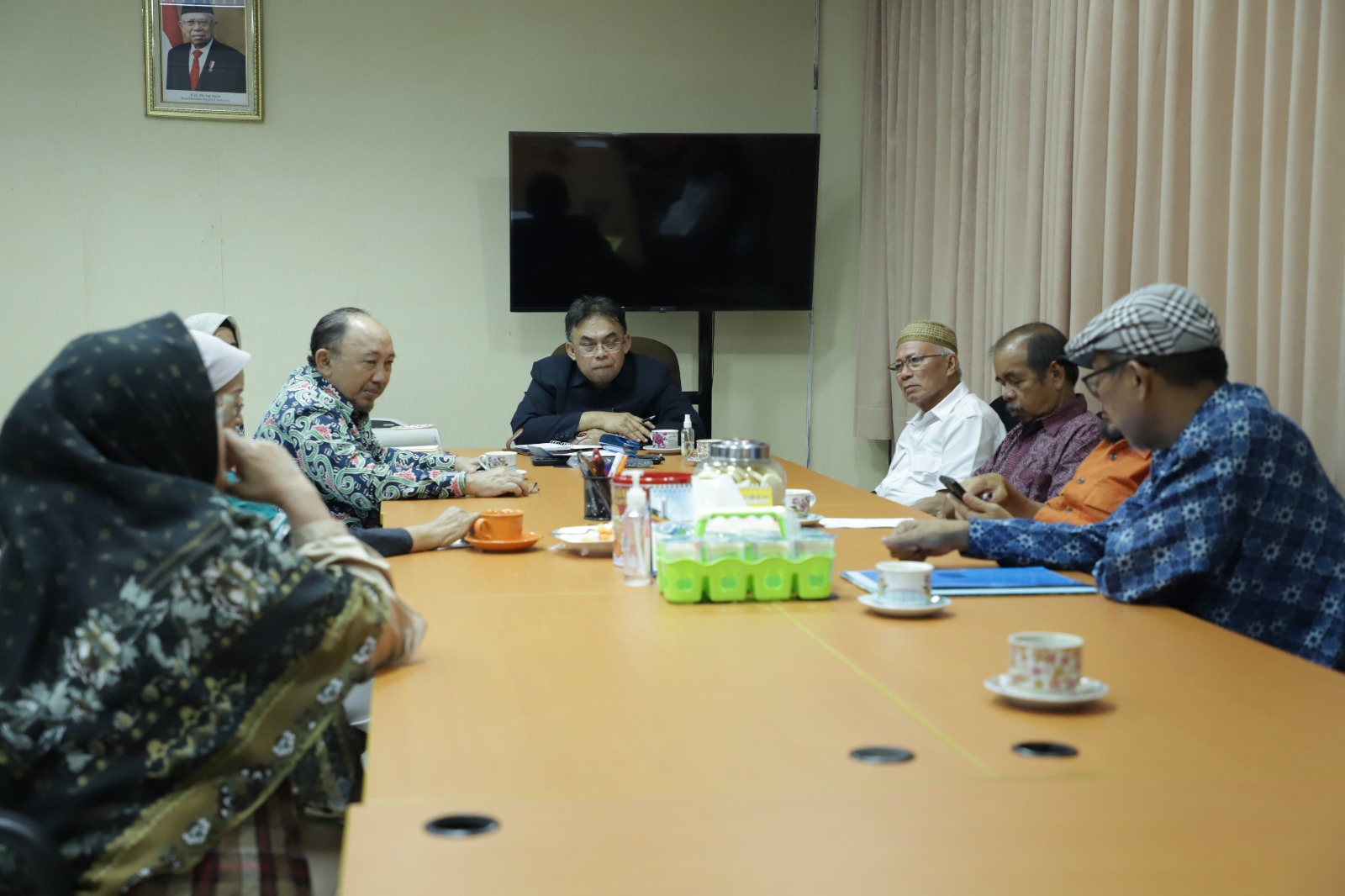 (Unila): Wakil Rektor Bidang Perencanaan, Kerjasama dan TIK Dr. Ayi Ahadiat, S.E., M.B.A.., didampingi Koordinator Kepegawaian Unila Indrayati Putri Idrus, S.H., M.H., menerima audiensi Ketua Ikatan Keluarga Purnabhakti Universitas Lampung (IKPA Unila) Ir. Ansori Djausal, M.T, dan jajaran di ruang kerja, Selasa 28 Februari 2023.