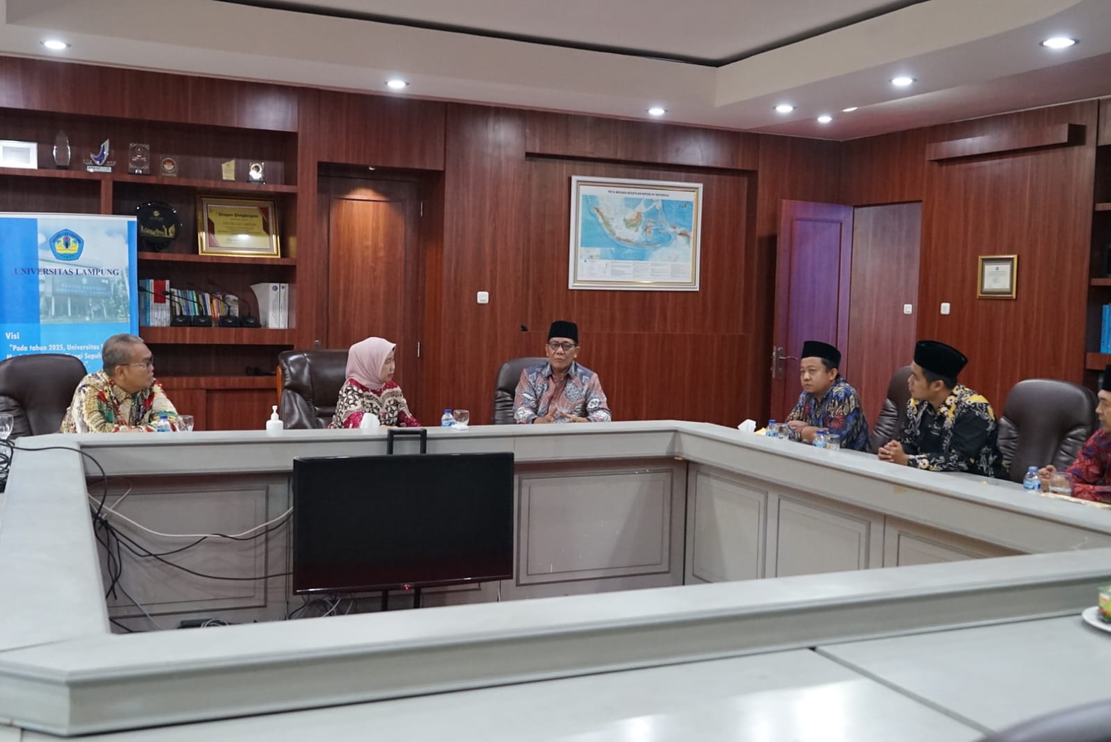 Pertemuan dihadiri Rektor Universitas Lampung (Unila) Prof. Dr. Ir. Lusmeilia Afriani, D.E.A., I.P.M., Asean., Eng., Kepala Biro Umum dan Keuangan, dan Ketua Lembaga Penelitina dan Pengabdian Kepada Masyarakat (LP2M). Sedangkan dari pihak Universitas Ma’arif Lampung (Umala) turut hadir Dr. Mispani, M.Pd.I., selaku Rektor, Wakil Rektor bidang Sarpras dan Ketenagakerjaan, Wakil Rektor bidang Kemahasiswaan dan Kerjasama, Ketua Lembaga Penjaminan Mutu, dan Ketua Lembaga Publikasi, Penelitian, dan PKM.