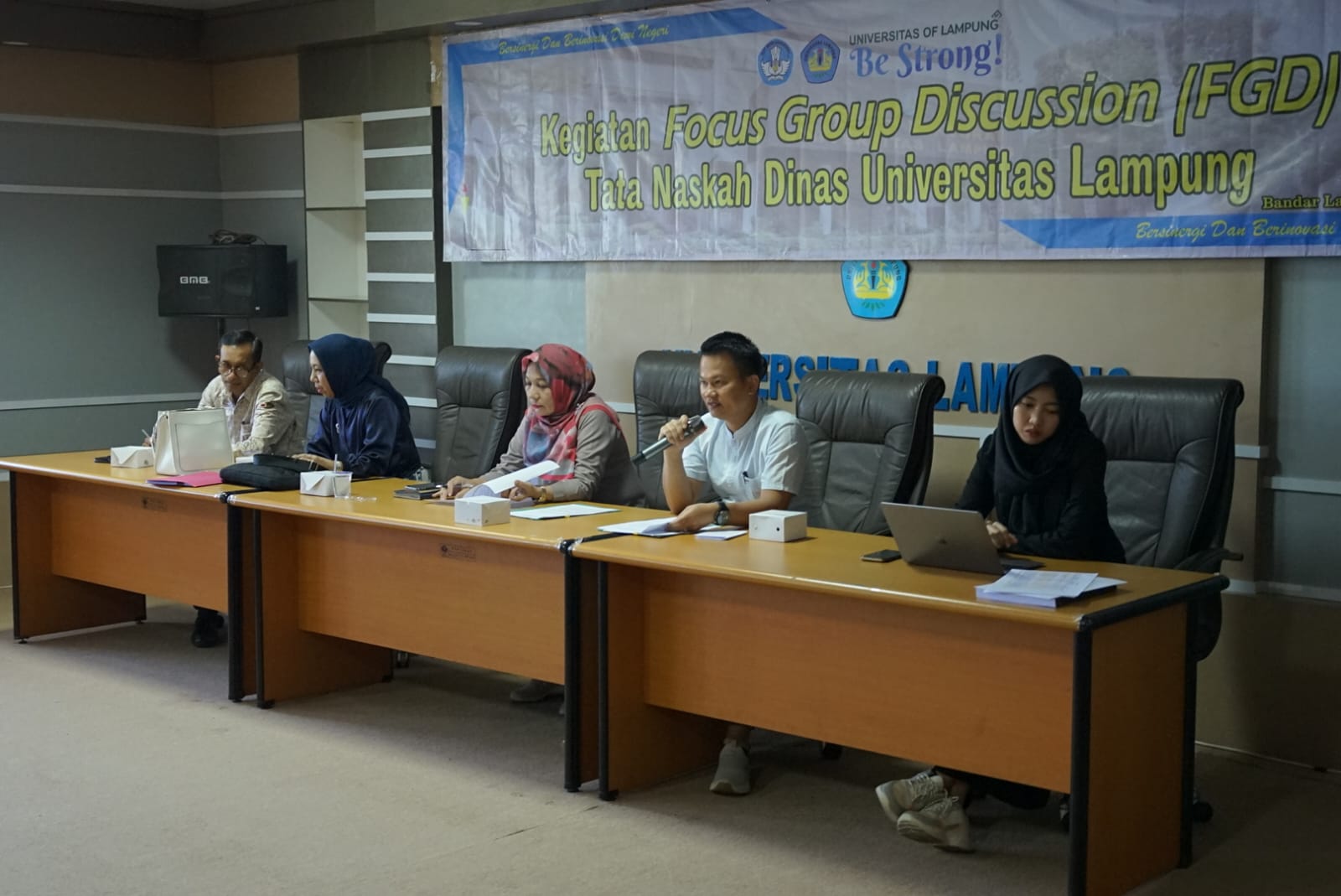 (Unila): Bagian HTLBMNU pada Biro Umum dan Keuangan (BUK) Universitas Lampung (Unila) mengadakan focus group discussion (FGD) pengelolaan tata naskah dinas di lingkungan universitas, Selasa, 4 Juli 2023.