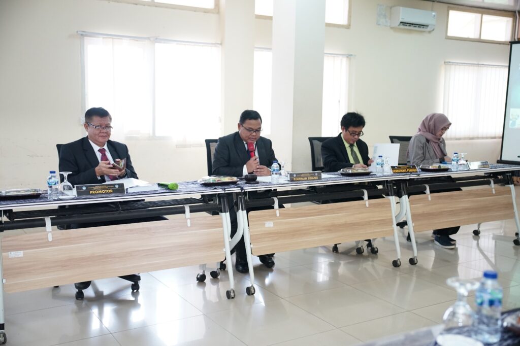 Ujian promosi doktor ini juga menghadirkan penguji eksternal dari Universitas Sriwijaya, yakni Dr. Frinsyah Virgo, S.Si., M.T., yang menguji dari perspektif luar institusi dan memberikan telaah objektif terhadap hasil disertasi.
