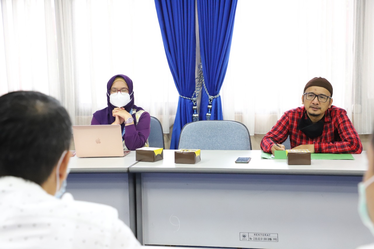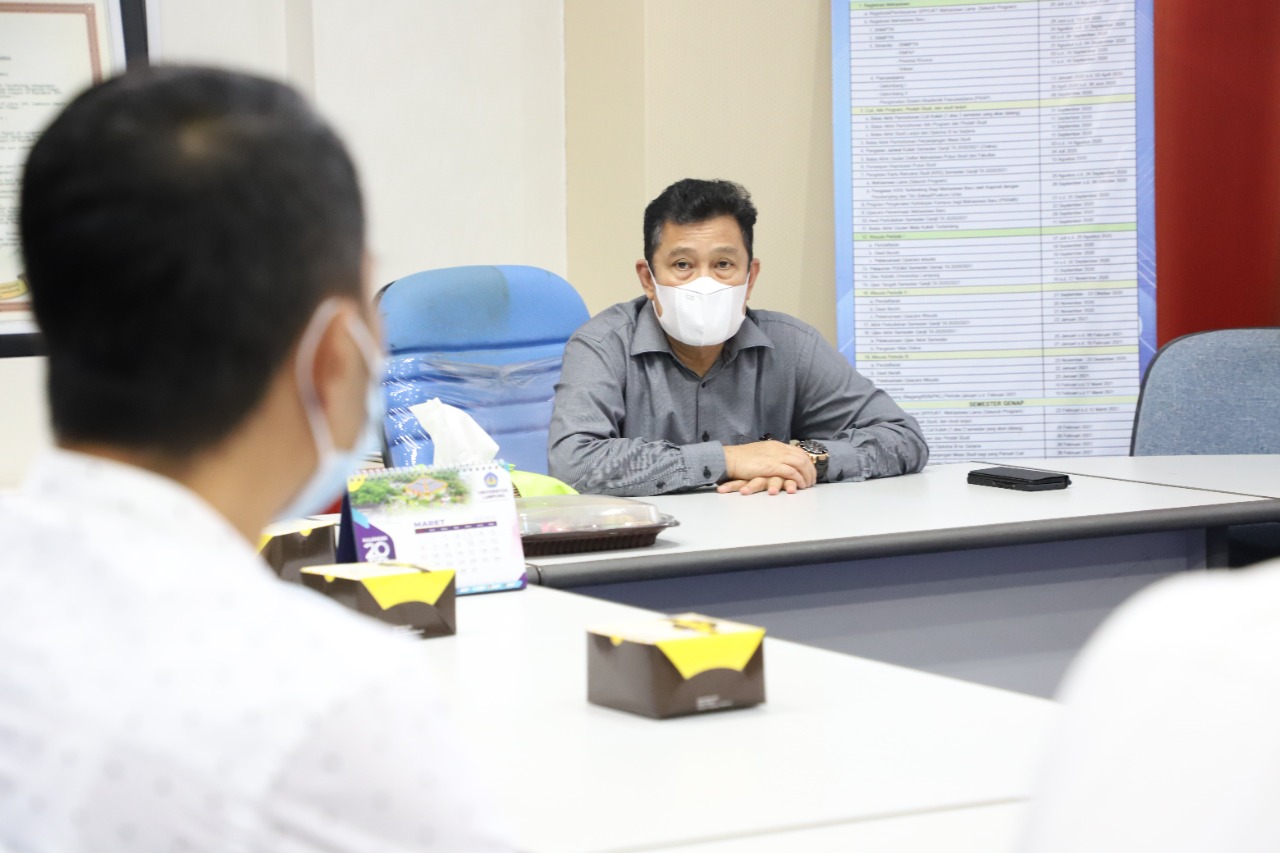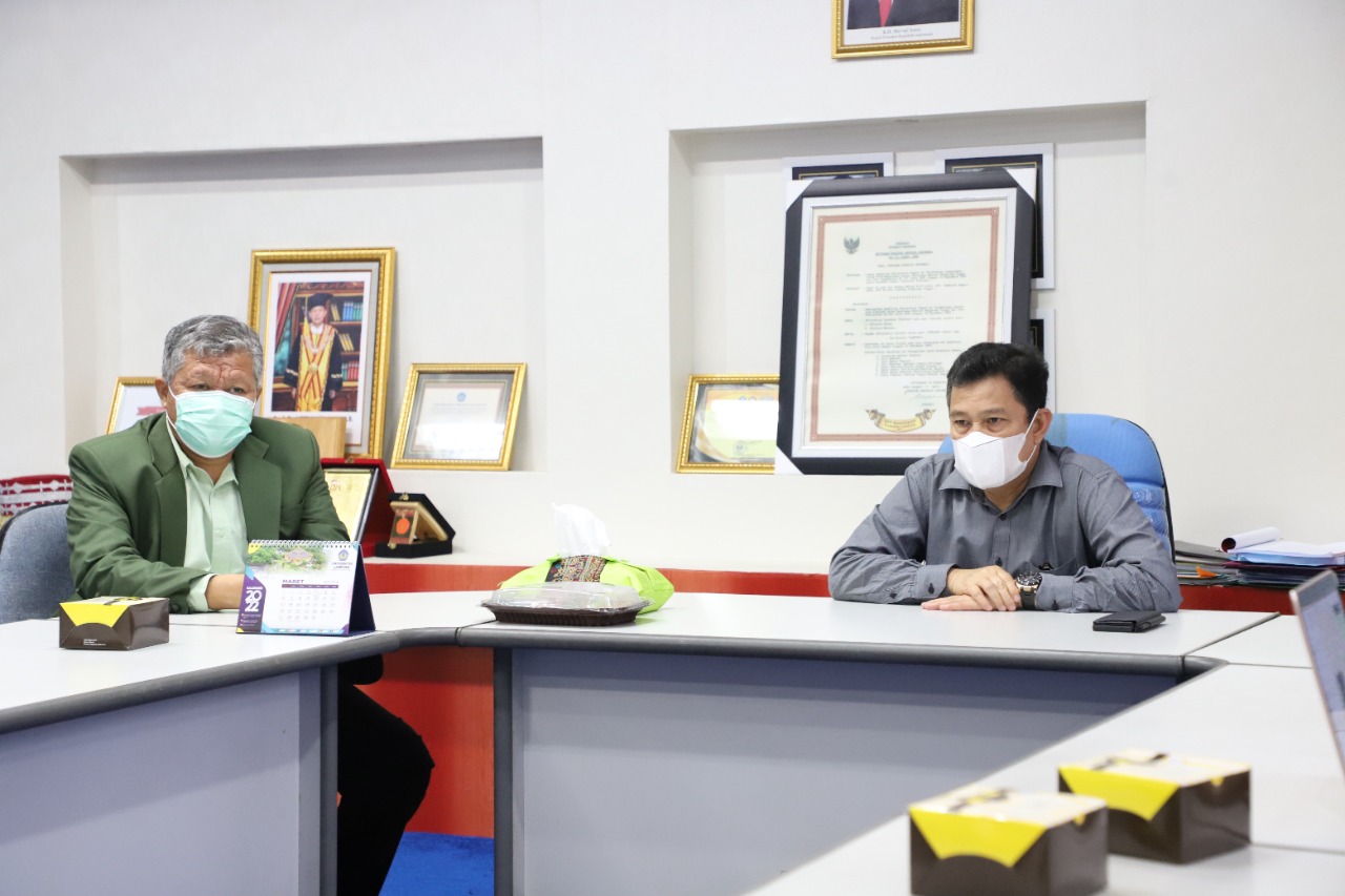 (Unila): Wakil Rektor Bidang akademik Universitas Lampung (Unila) Prof. Dr. Heryandi, S.H., M.S., didampingi Wakil Rektor Bidang Perencanaan, Kerja sama, dan TIK Prof. Ir. Suharso, Ph.D., menggelar rapat pembahasan kerja sama penerimaan mahasiswa baru (PMB) dengan PT Great Giant Pinnapple (GGP), di ruang kerjanya, Senin, 21 Maret 2002.