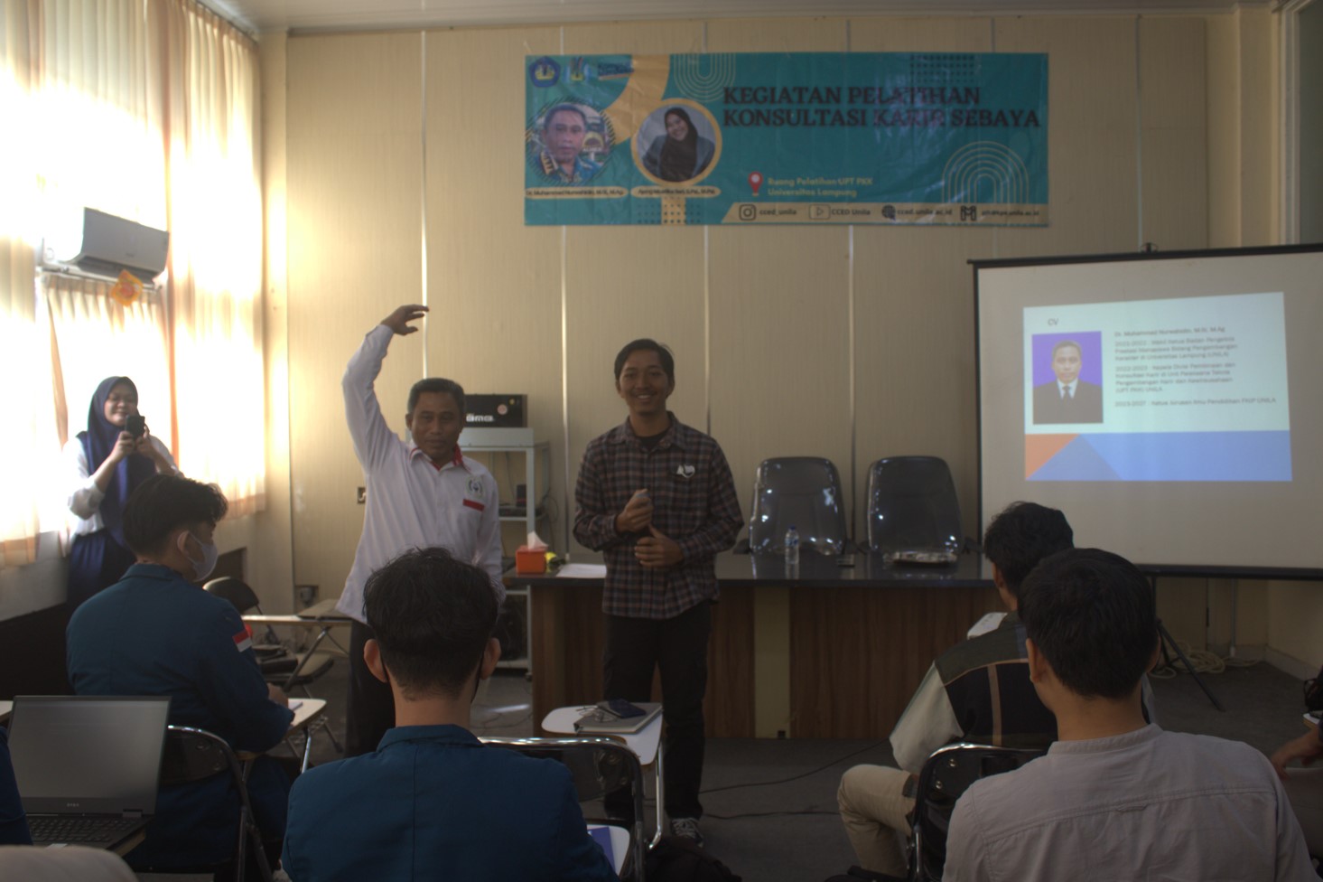 (Unila): UPT Pengembangan Karir dan Kewirausahaan (CCED) Universitas Lampung (Unila) adakan kegiatan Pelatihan Konsultasi Karier Sebaya yang dilaksanakan pada Rabu, 22 Maret 2023 secara luring di Ruang Pelatihan CCED.