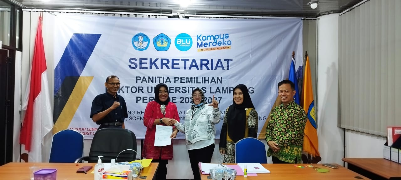 (Unila): Usai dua kandidat mendaftarkan diri, Panitia Pemilihan Rektor (Pilrek) Universitas Lampung (Unila) kembali menerima berkas pendaftaran dua Bakal Calon Rektor Unila Periode 2023 – 2027, Jumat, 25 November 2022.